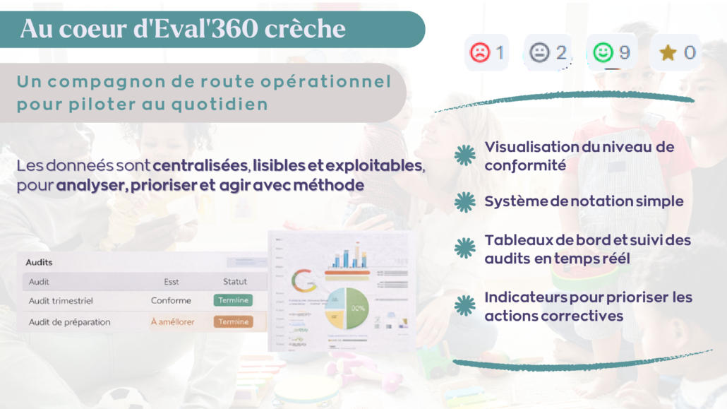 C’est dans cette logique qu’Audit 360 Crèche a été conçu : non pas comme un outil de contrôle isolé, mais comme un cadre global d’analyse et de pilotage, intégrant l’ensemble des dimensions qui font la richesse et la complexité de la petite enfance.